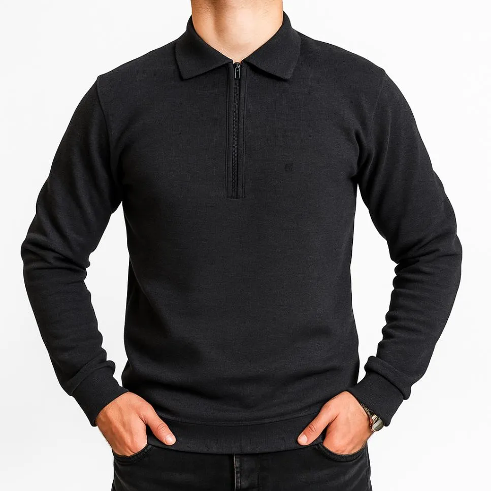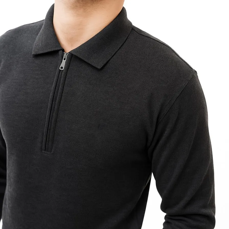 بلوز سلانیک نیم زیپ یقه دار آدام زغالی کد 1201237