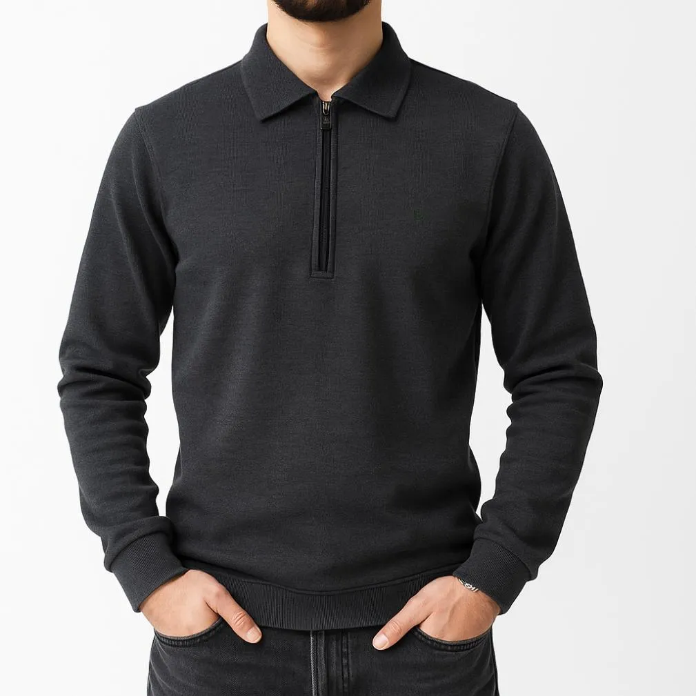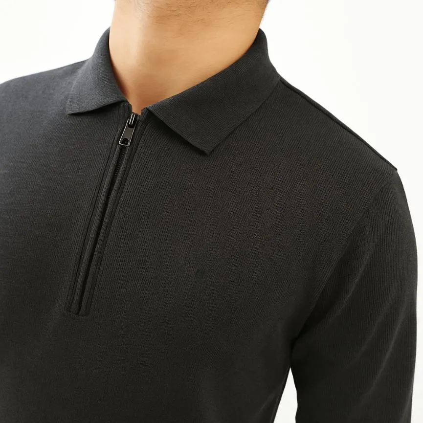 بلوز سلانیک نیم زیپ یقه دار آدام طوسی تیره کد 1201237