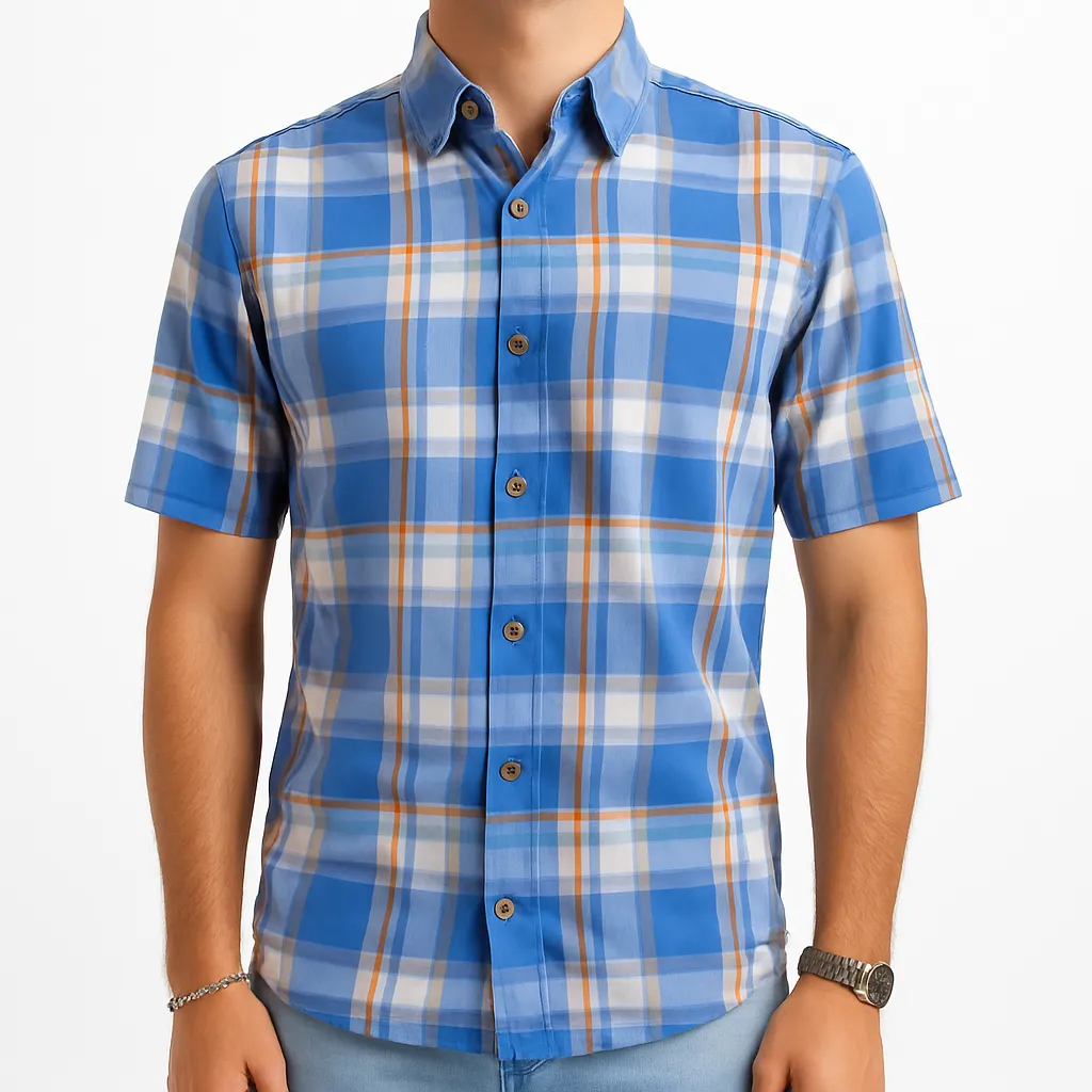 پیراهن چهارخانه آستین کوتاه کد 101123