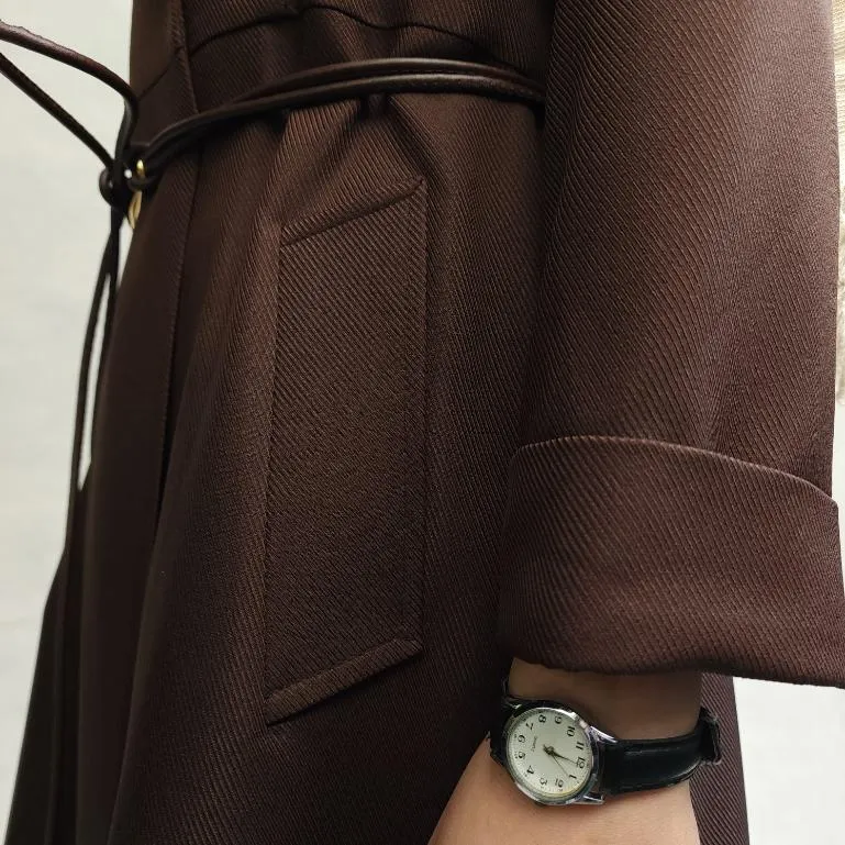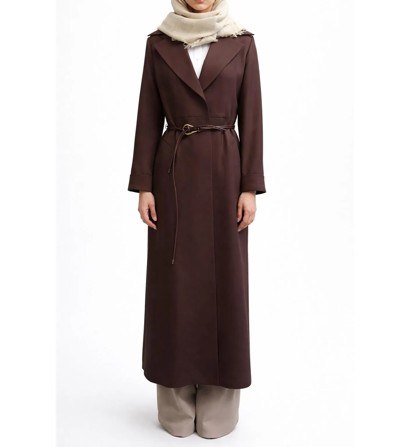 مانتو بلند مازراتی یقه انگلیسی قهوه ای کد1591383