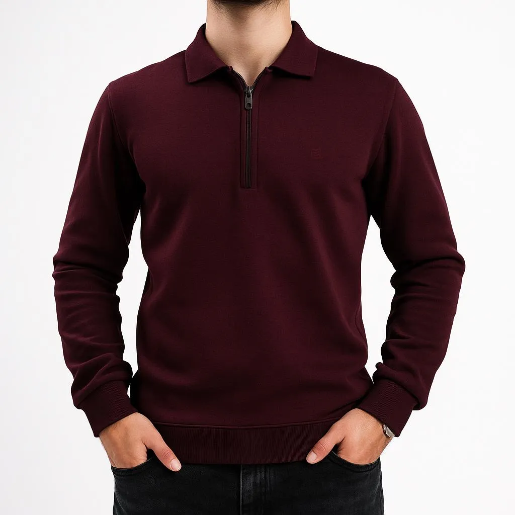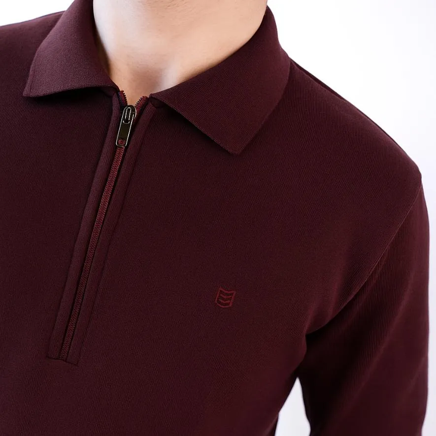 بلوز سلانیک نیم زیپ یقه دار آدام زرشکی تیره کد 1201237