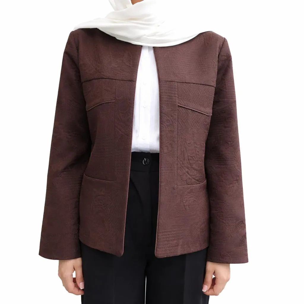 کت تک زنانه ژاکارد قهوه ای کد1501397