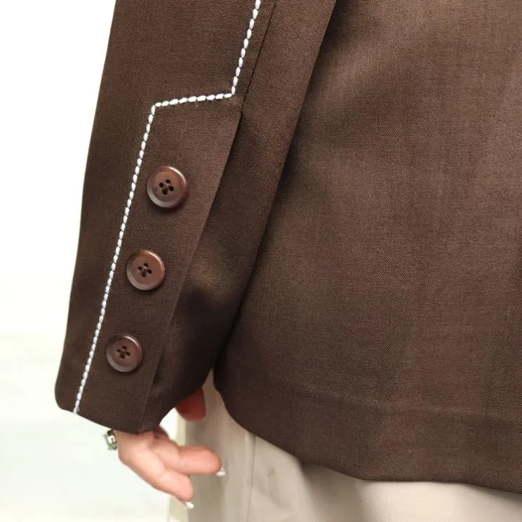 خانه » محصولات » کت تک زنانه بزیاق یقه انگلیسی قهوای کد1501388