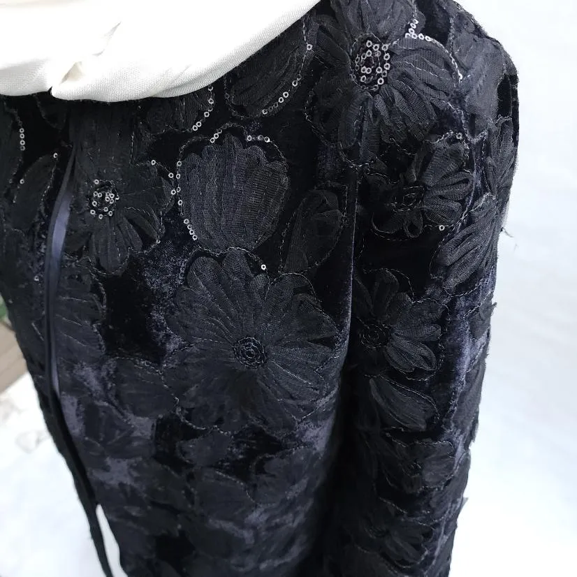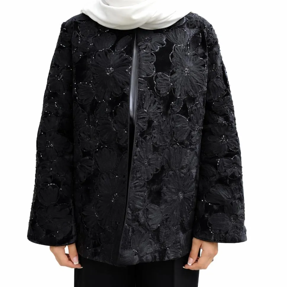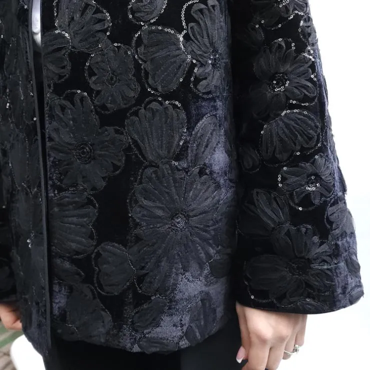 کت تک زنانه مخمل گلدوزی برجسته مشکی کد 1501381