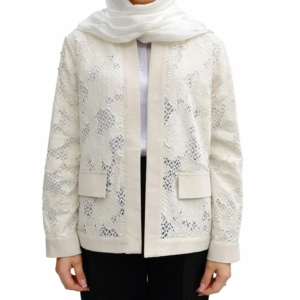 کت تک زنانه گیپور زیپ دار سفید کد1501380